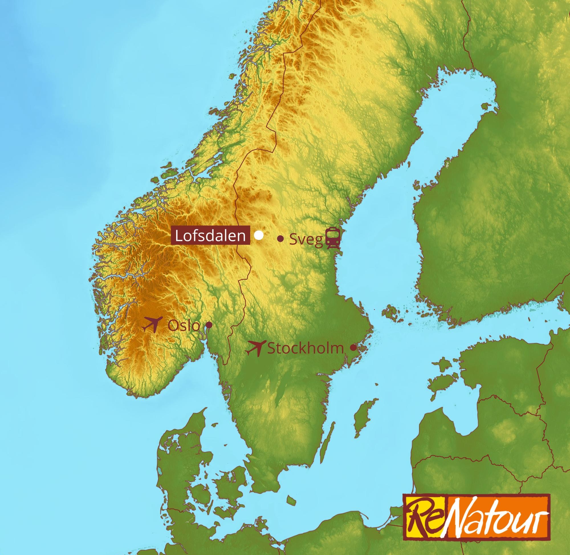Anreise- Die Anreise nach Lofsdsalen erfolgt in der Regel über Stockholm (ca. 500k m) oder Oslo (ca. 390 km).